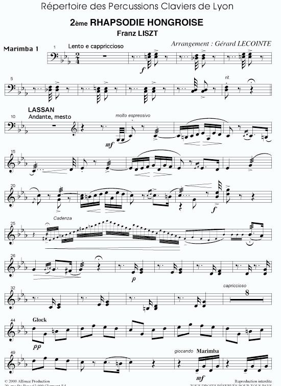 Pour 2 vibraphones, 2 marimbas, 1 marimba basse.