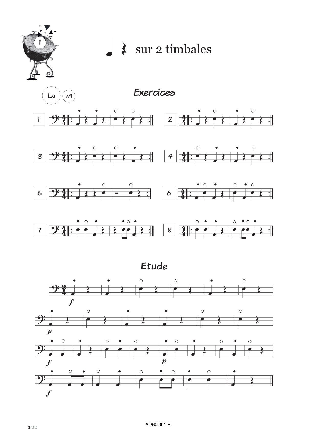 Methode pour l’apprentissage des timbales. Une quinzaine d’extraits d’oeuvres composees par Beethoven, Bizet, Charpentier etc … classes par ordre de difficulte et precedes d’exercices et d’une petite etude. Avec accompagnements de piano.
