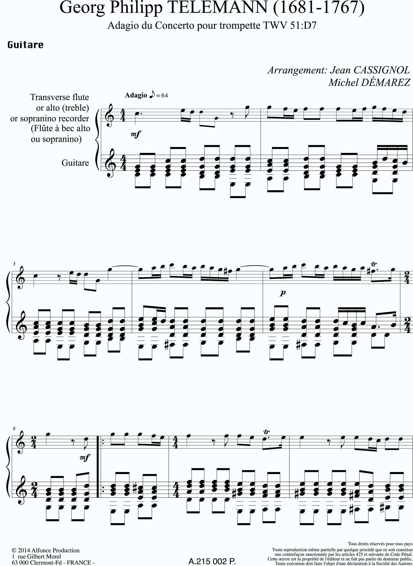 Arrangement pour guitare et flute