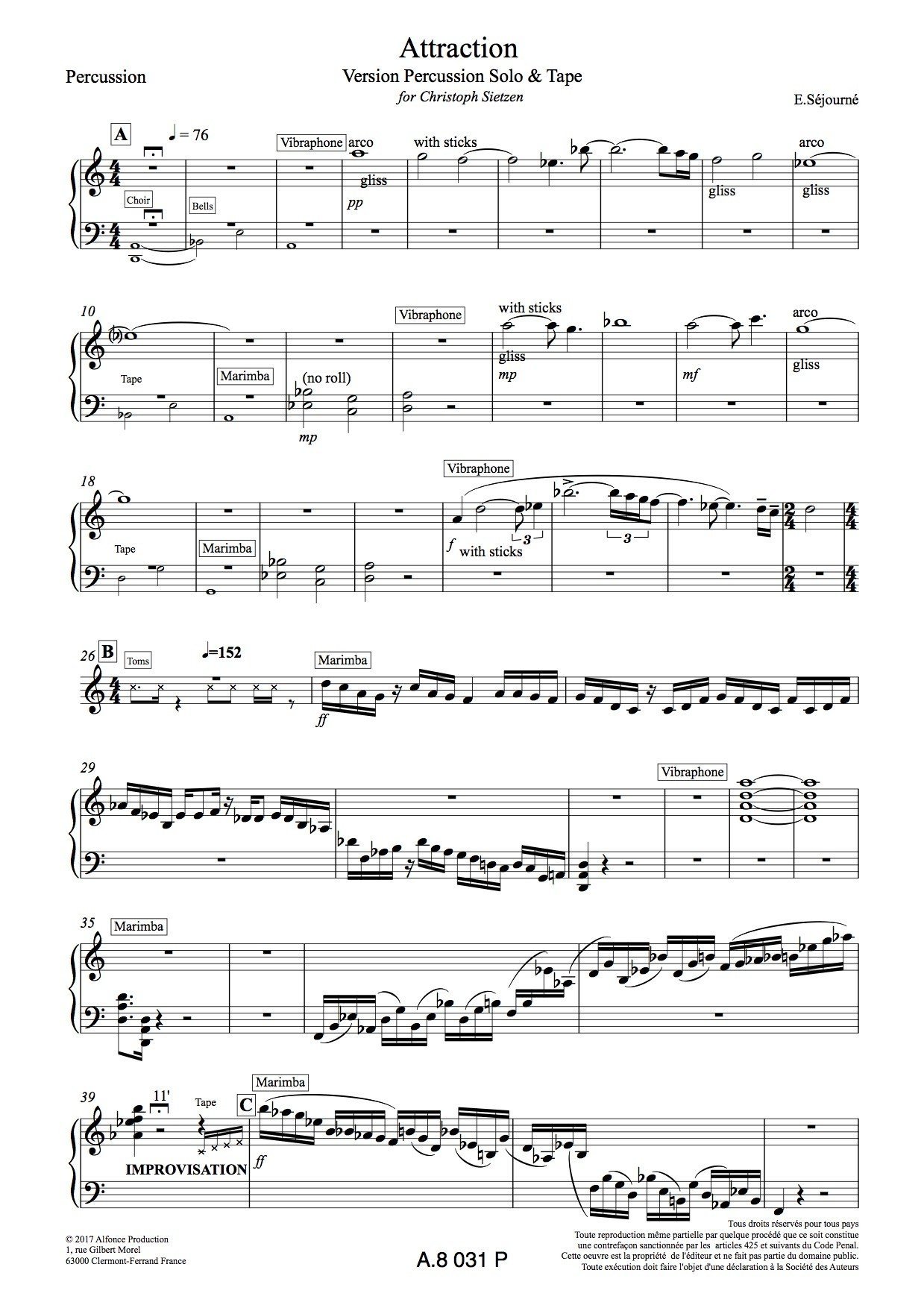 Piece pour percussion solo et bande.Marimba 5 octaves, Vibraphone, Junk Percussion