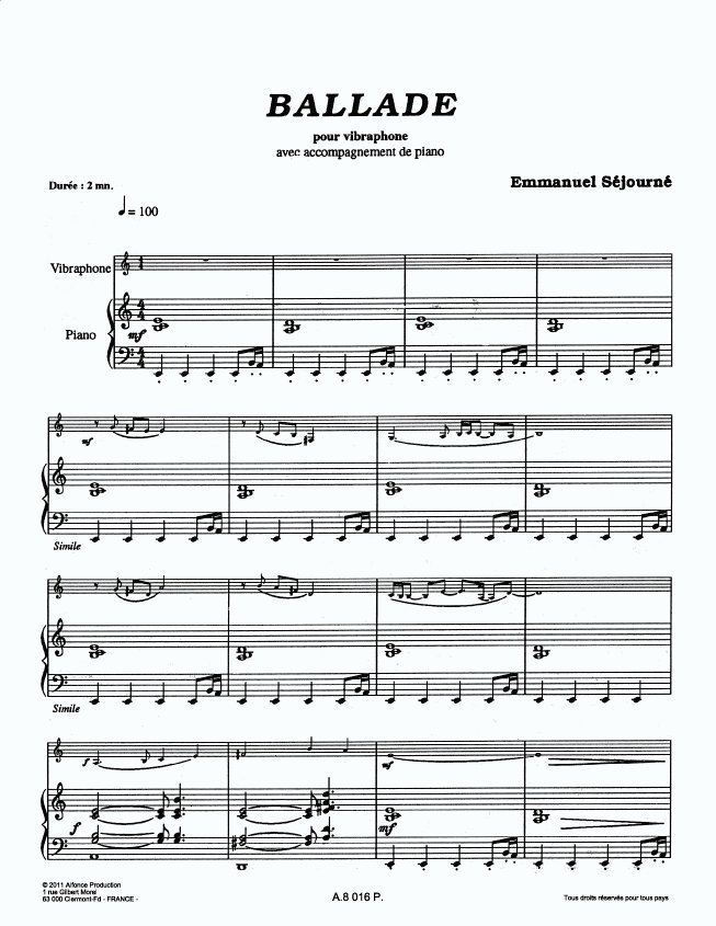 Pièce pour vibraphone et piano – 2 min – Anciennement édité par les éditions Zurfluh