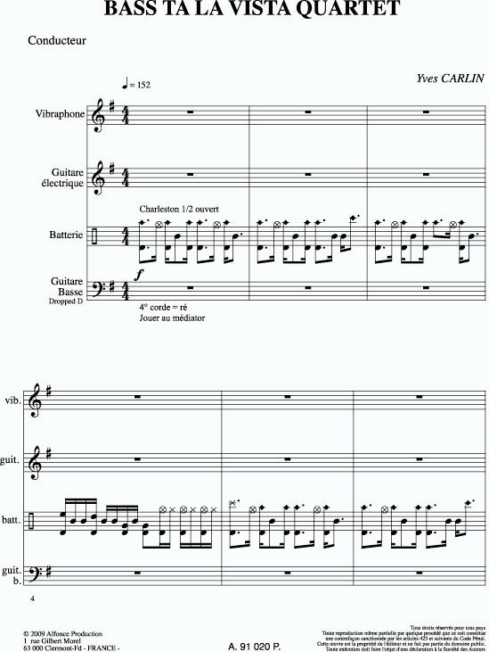 Piece pour batterie, vibra, guitare electrique et guitare basse.