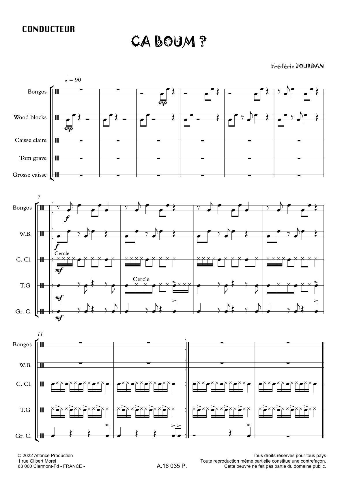 Pour 5 percussions : bongos, wood blocks, caisse claire, tom grave, grosse caisse
