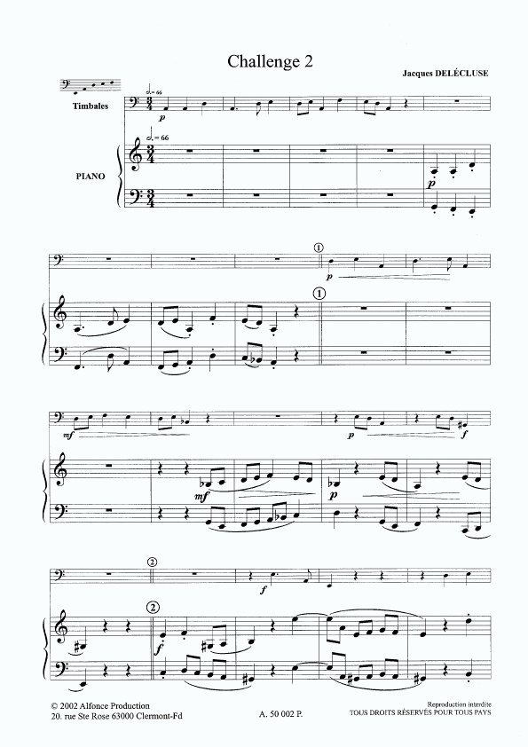 Partition pour timbales et piano composée d’après des traits d’orchestre.