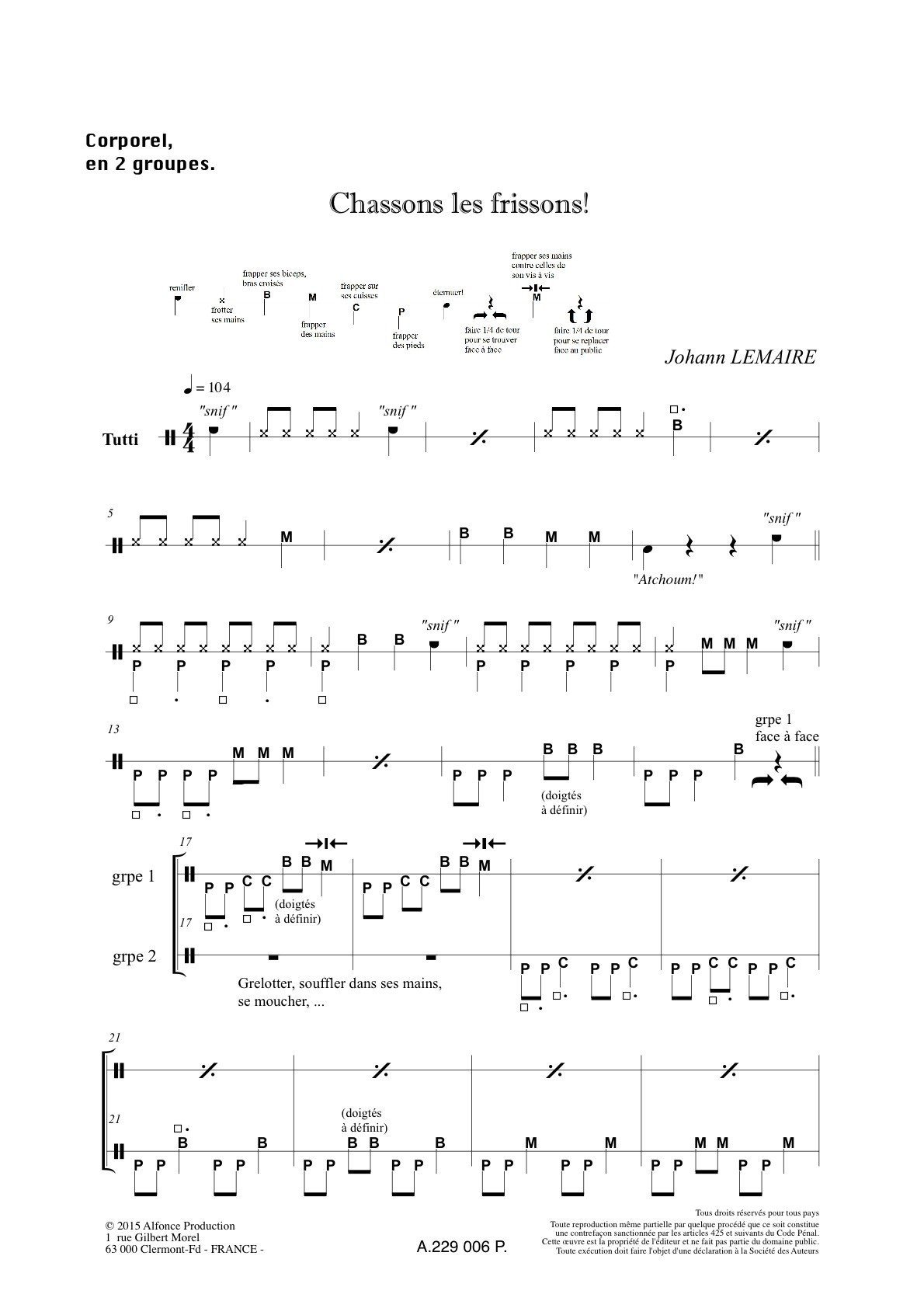 Piece pour percussion corporelle en 2 groupes