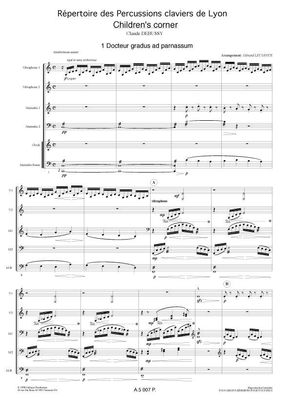 Pour 2 vibraphones, 2 marimbas, 1 xylo, 1 marimba basse, 1 glock.