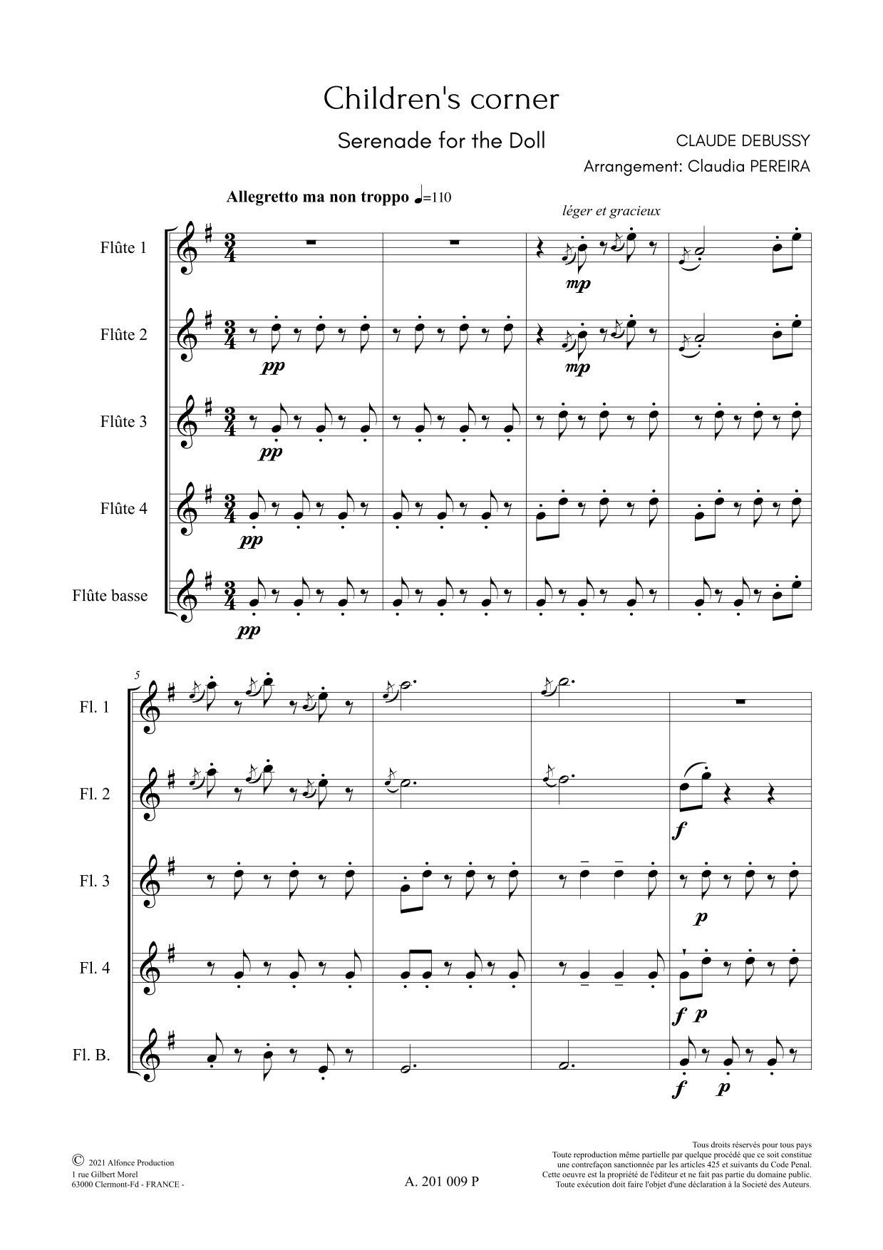 Arrangement de la pièce de Claude Debussy pour 4 flutes et flute basse