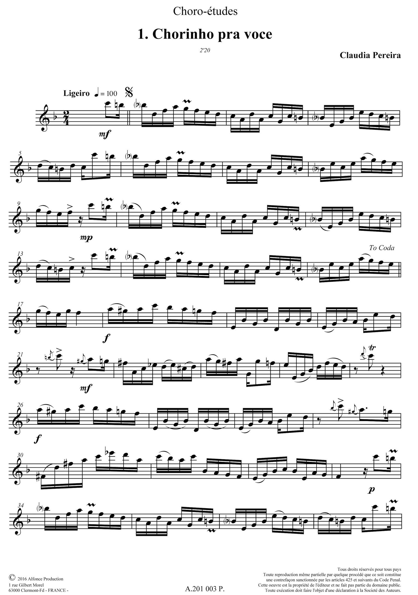 6 études dans le style du Choro (musique populaire instrumentale brésilienne) pour flûte solo