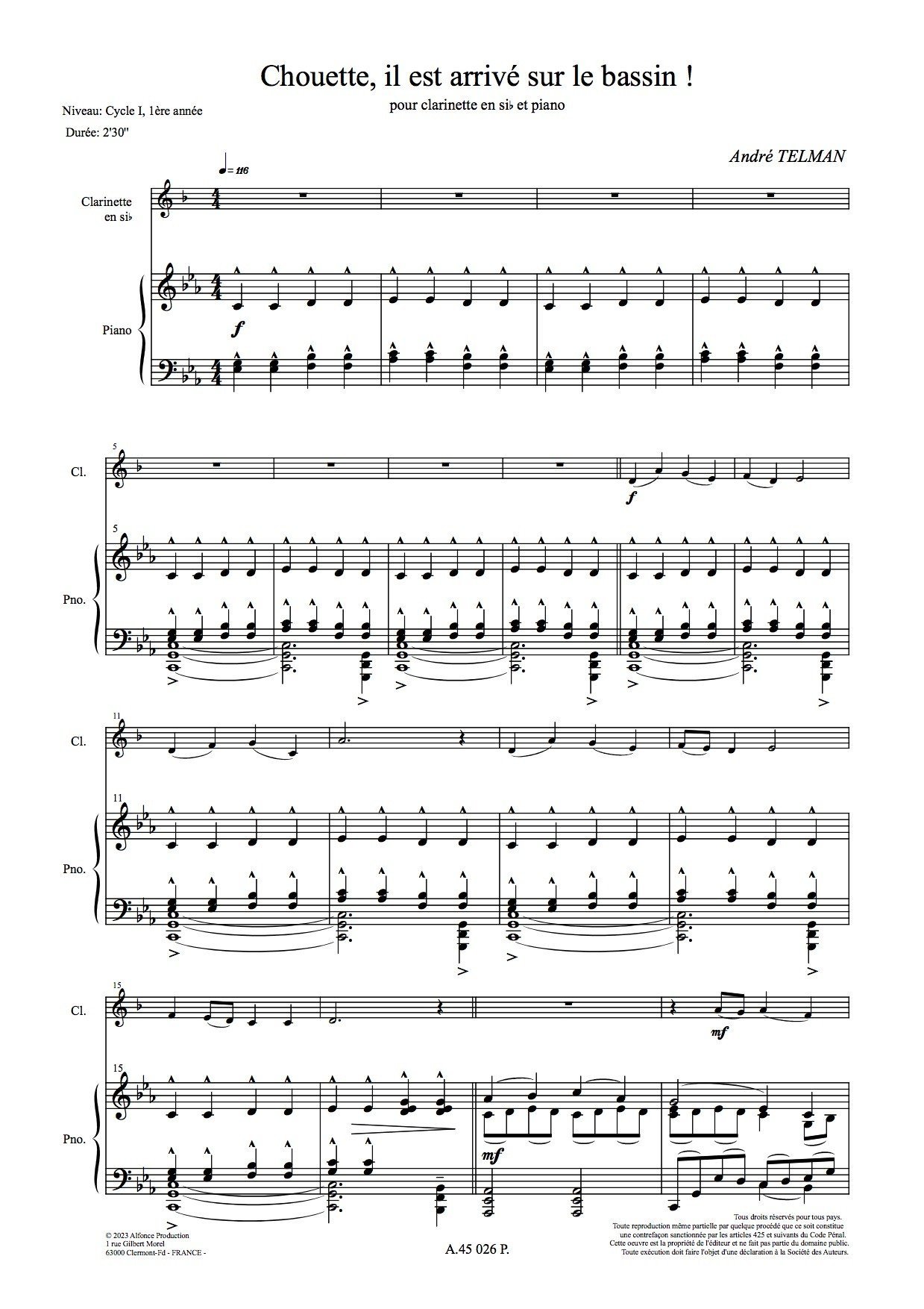 Version simplifiée pour clarinette Sib et piano – Cycle 1 –