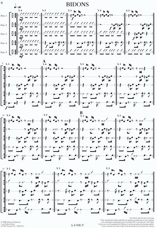 Recueil de 4 pièces pour peaux : bidons, surdo, taikos et bendirs