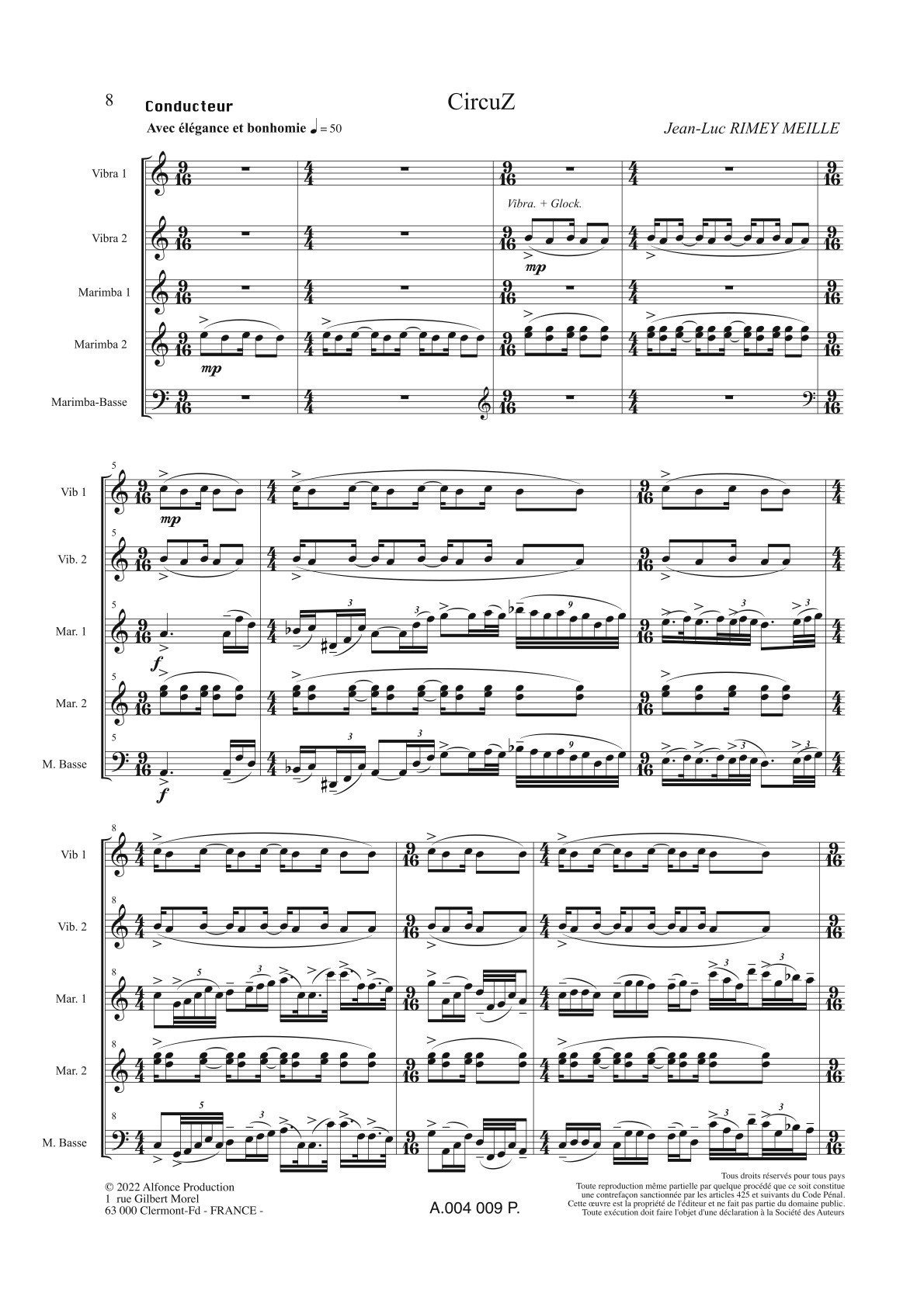 Recueil de 2 pièces pour 5 claviers (2 x vibra, 2 x marimbas, marimba basse)