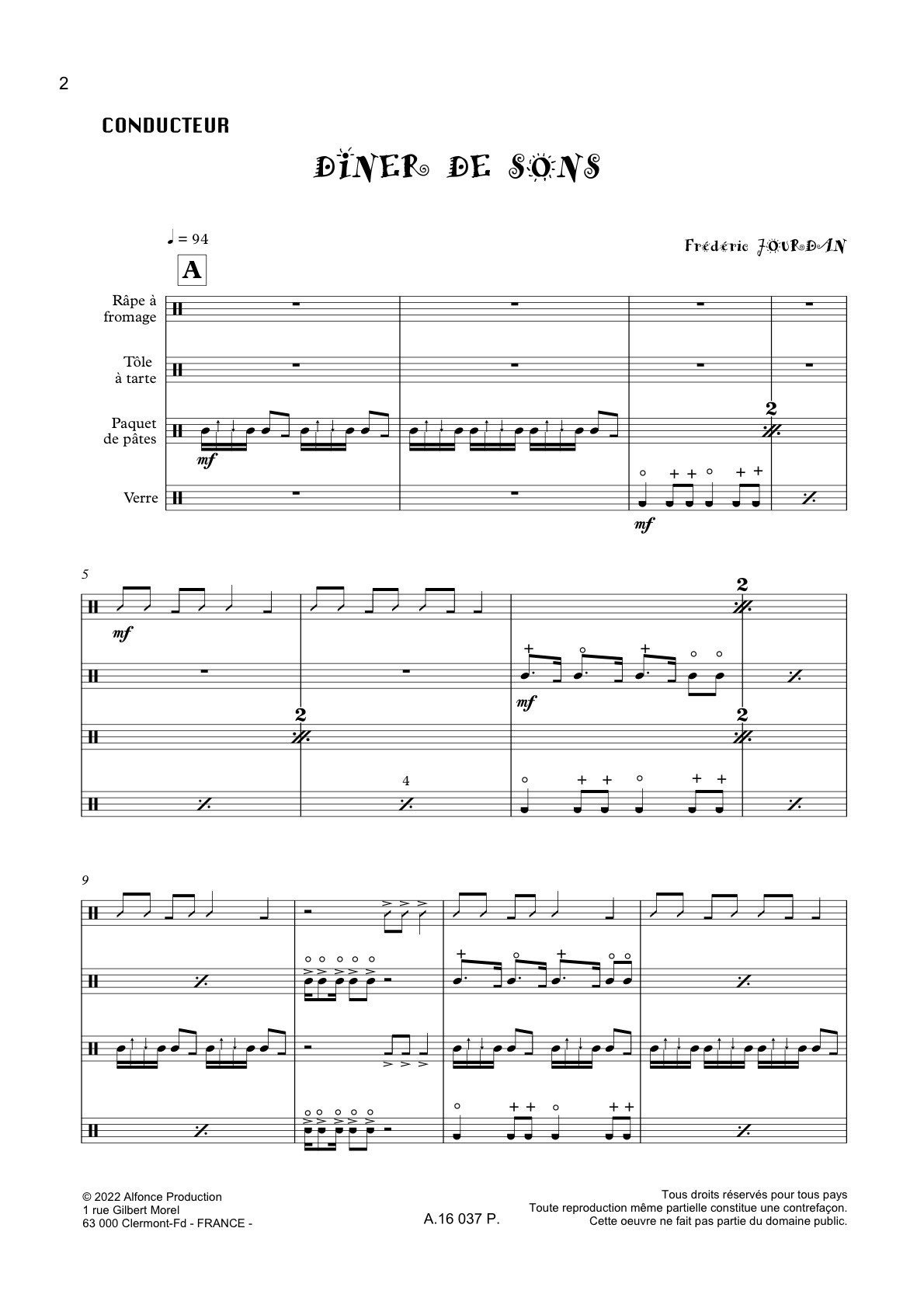Pour 4 percussionnistes de fin de cycle 1 (3ème année). Avec ustensiles de cuisine et différents légumes