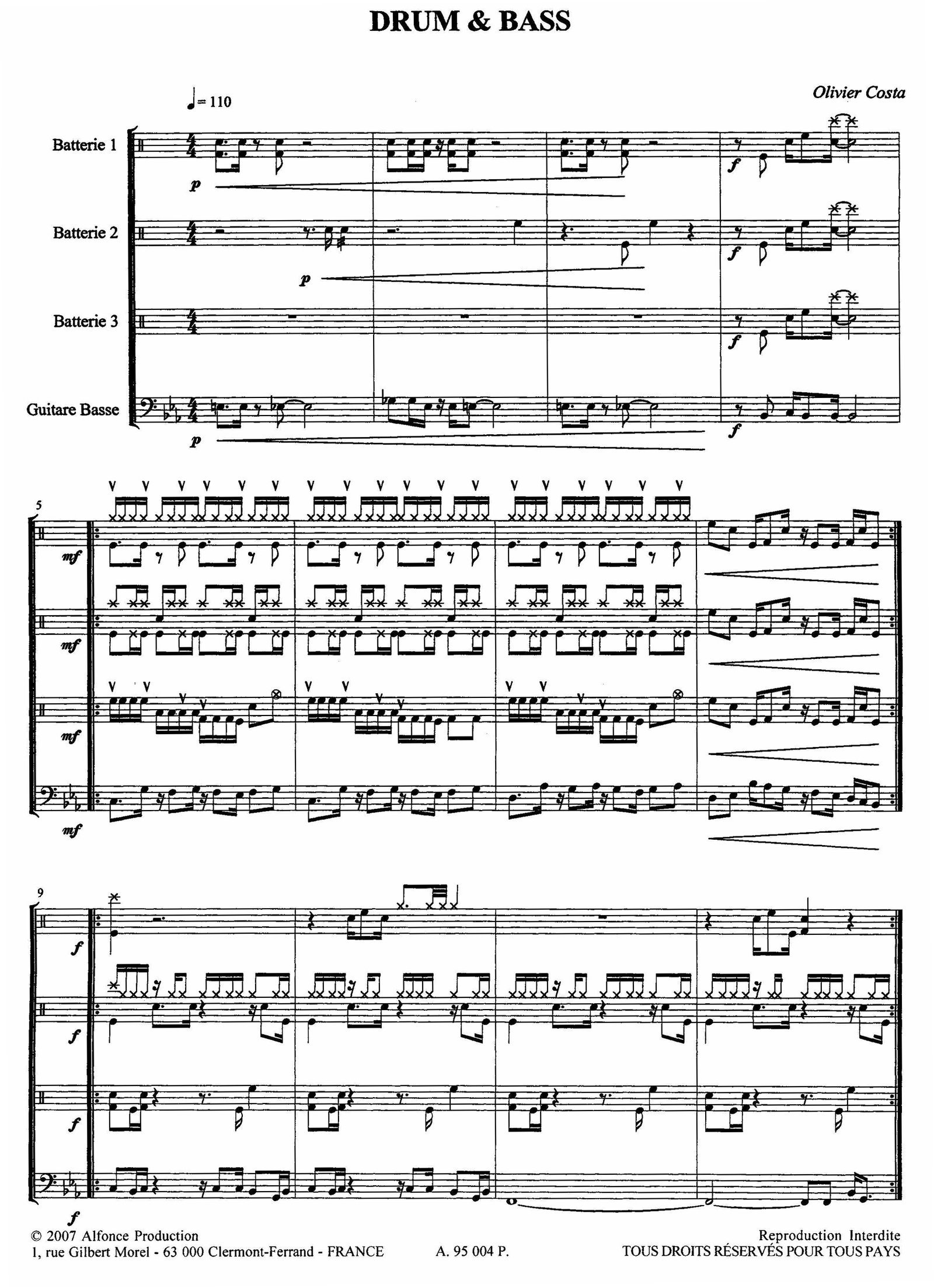 Pour 3 batteries et guitare basse
