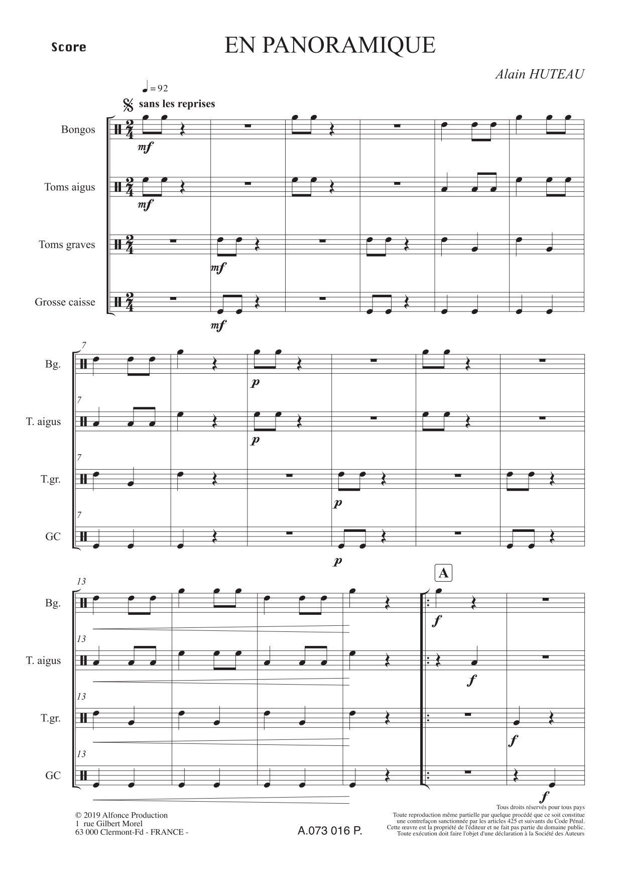 Musique d’ensemble pour 4 percussionnistes : Bongos, Tom grave, Tom aigu et Grosse caisse