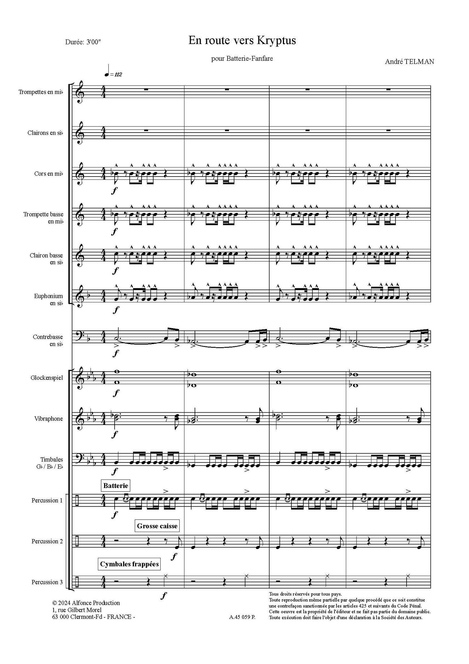 Piece d’une durée de 3 minutes pour batterie fanfare