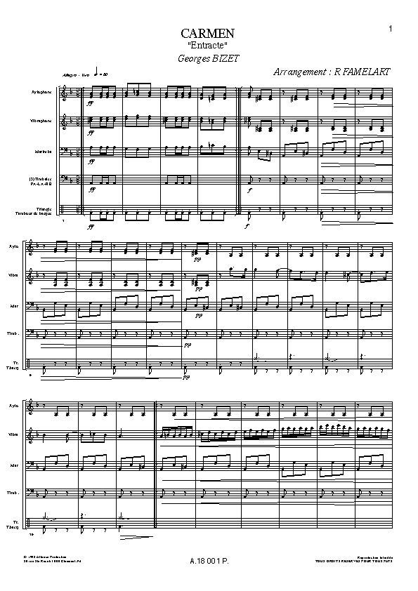 Arrangement pour Xylophone, vibraphone, marimba, 3 timbales avec accessoires.