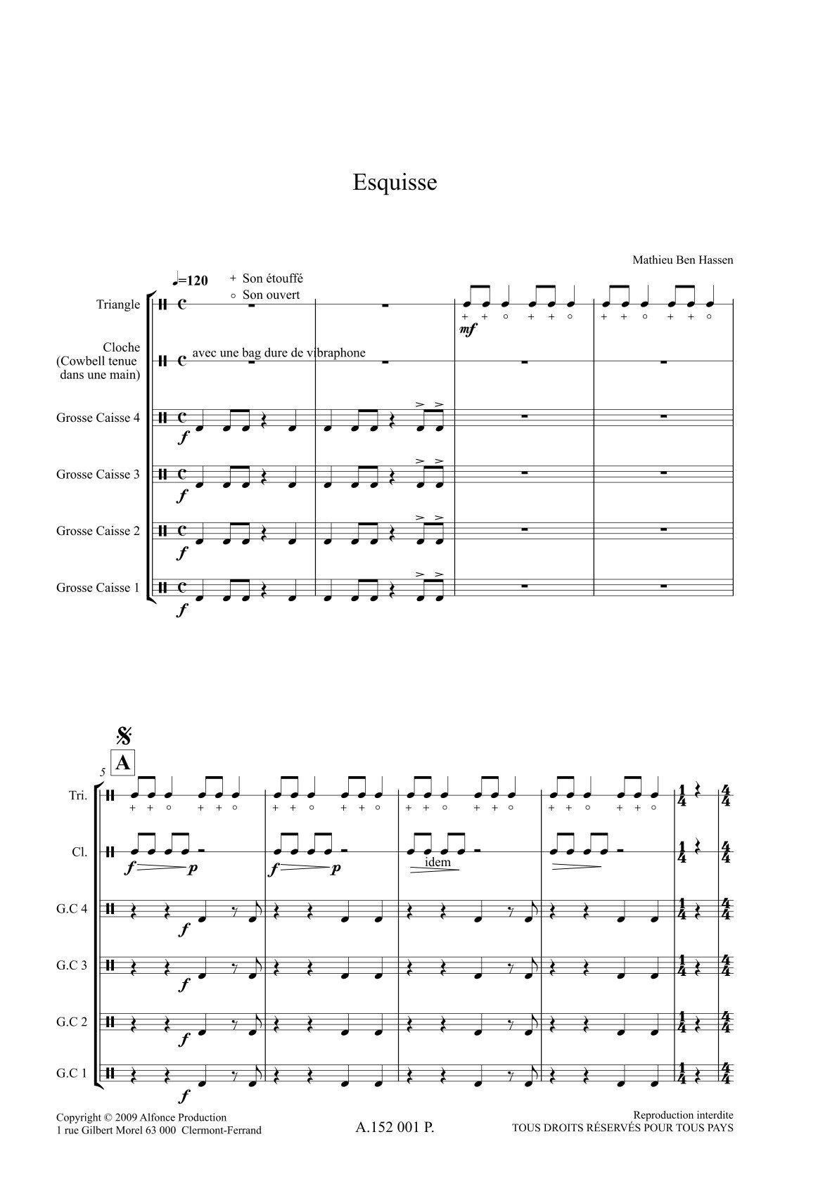 Pour 6 percussionnistes : Triangle – Cloche – Grosse Caisse X 4