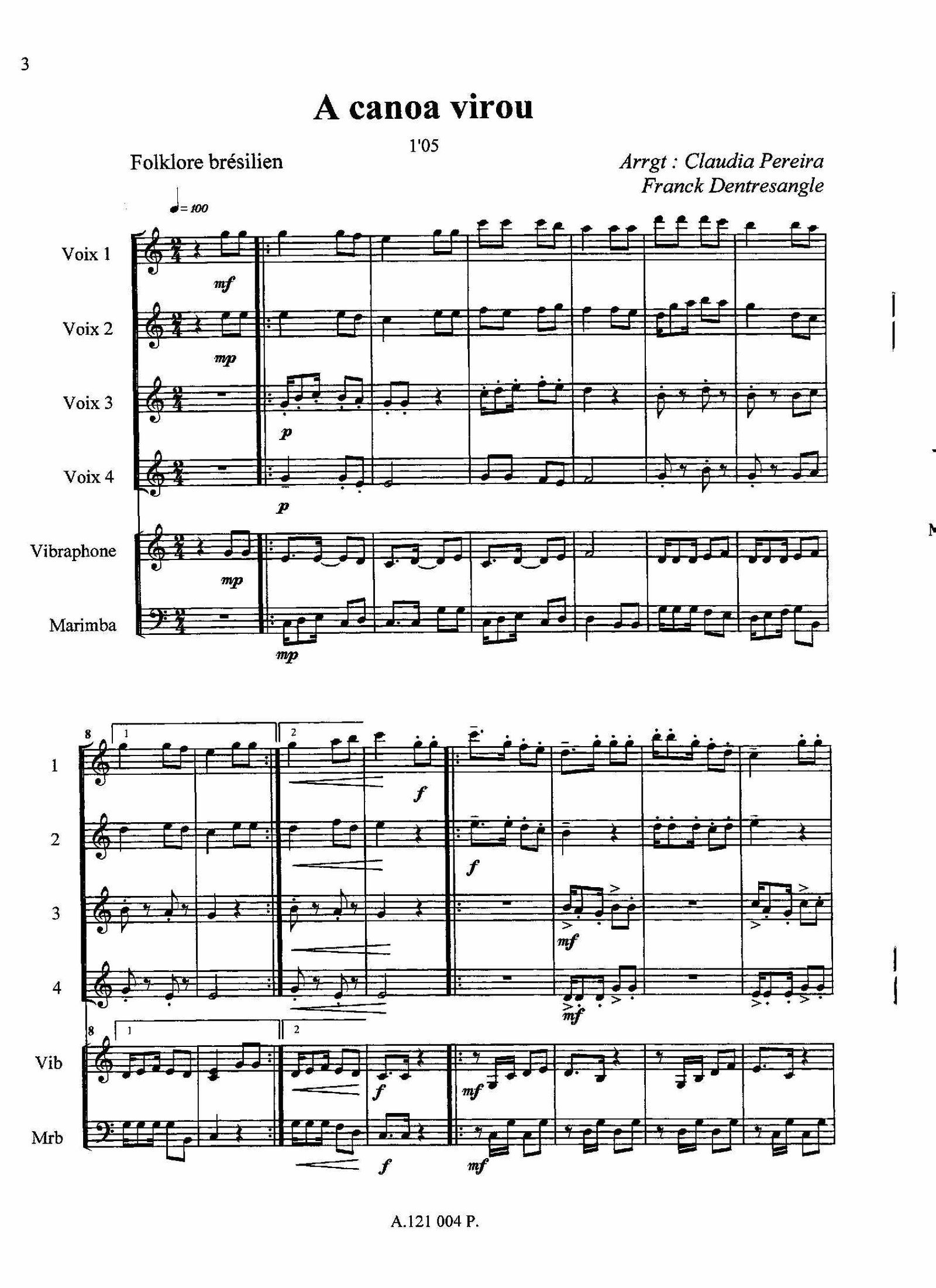 Pour parcourir la musique du folklore bresilien sous la forme de quatuors accompagnee par des percussions. Instruments pour le quatuor au choix et les parties separees sont proposees en Ut, Sib et Mib
