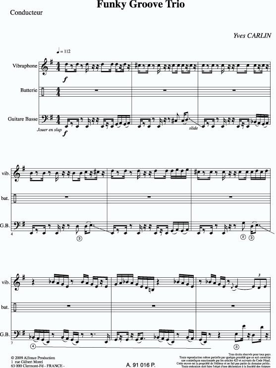 Piece pour vibraphone, batterie et guitare basse