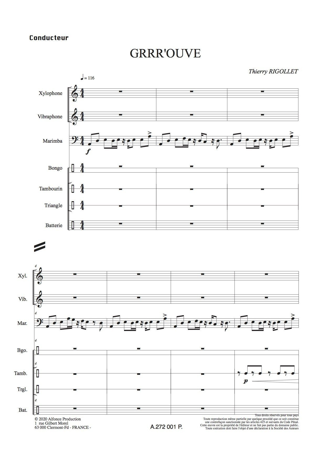 Pièce de cycle 2 pour 7 percussions : xylophone, vibra, marimba, bongo, tambourin, triangle et batterie.