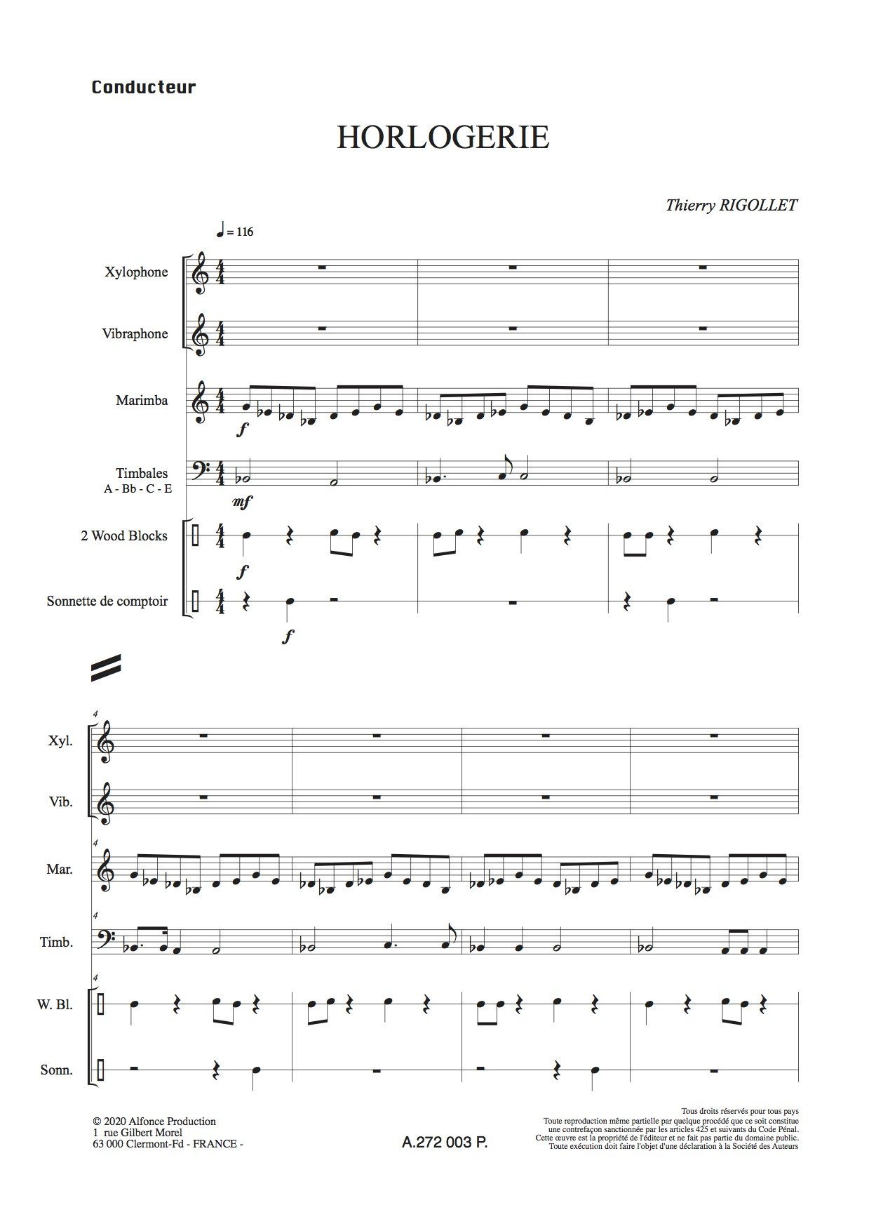 Pièce de cycle 2 pour 6 percussions:Xylo, vibra, marimba, timbales (A, Bb, C, E) – 2 wood bl – sonnette de comptoir