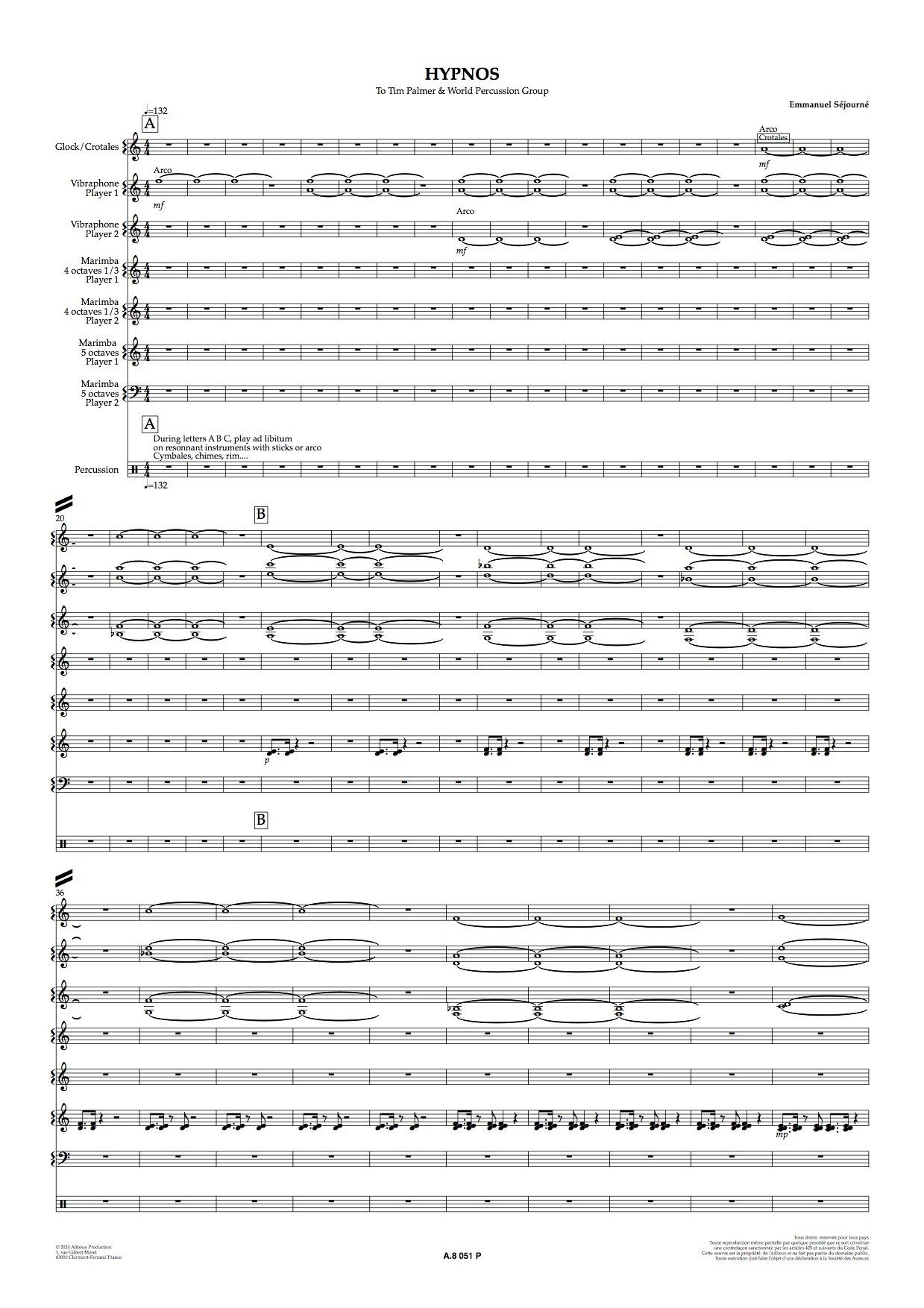 Pièce pour 8 percussionnistes :Block, vibra x 2, marimba 4 oct 1/3 X 2, marimba 5 oct X 2