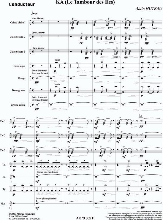 Piece pour peaux : caisse claire (x3), tom aigus, bongo, toms graves et grosse caisse