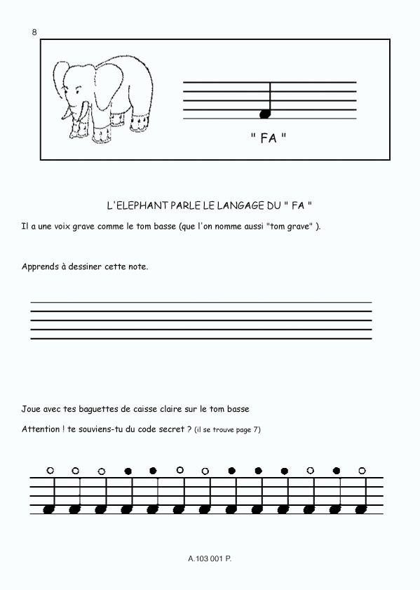 A partir de 6 ans Sous forme ludique, ce 1er cahier est illustre avec des jeux, des devinettes et des dessins a colorier ou des animaux représentent les instruments. Les enfants pourront approcher l’etude serieuse de la percussion et ce premier cahier aborde les notions de pulsation, de la base des rythmes, l’usage des silences, de la caisse-claire et des toms. A suivre : Village Claviers et Village Accessoires