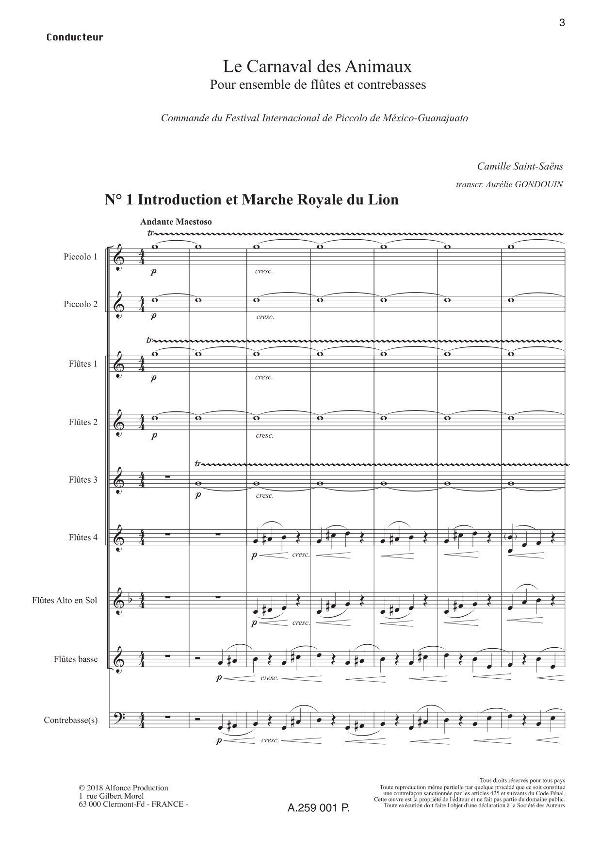 Arrangement pour ensemble de flutes et contrebasse.1 X piccolo 1, 1 X piccolo 2, pour les flutes (flute x 4, flutes Alto en Sol, flutes basse) jusqu’a 4-5 personnes par voix et contrebasses X 2 personnes