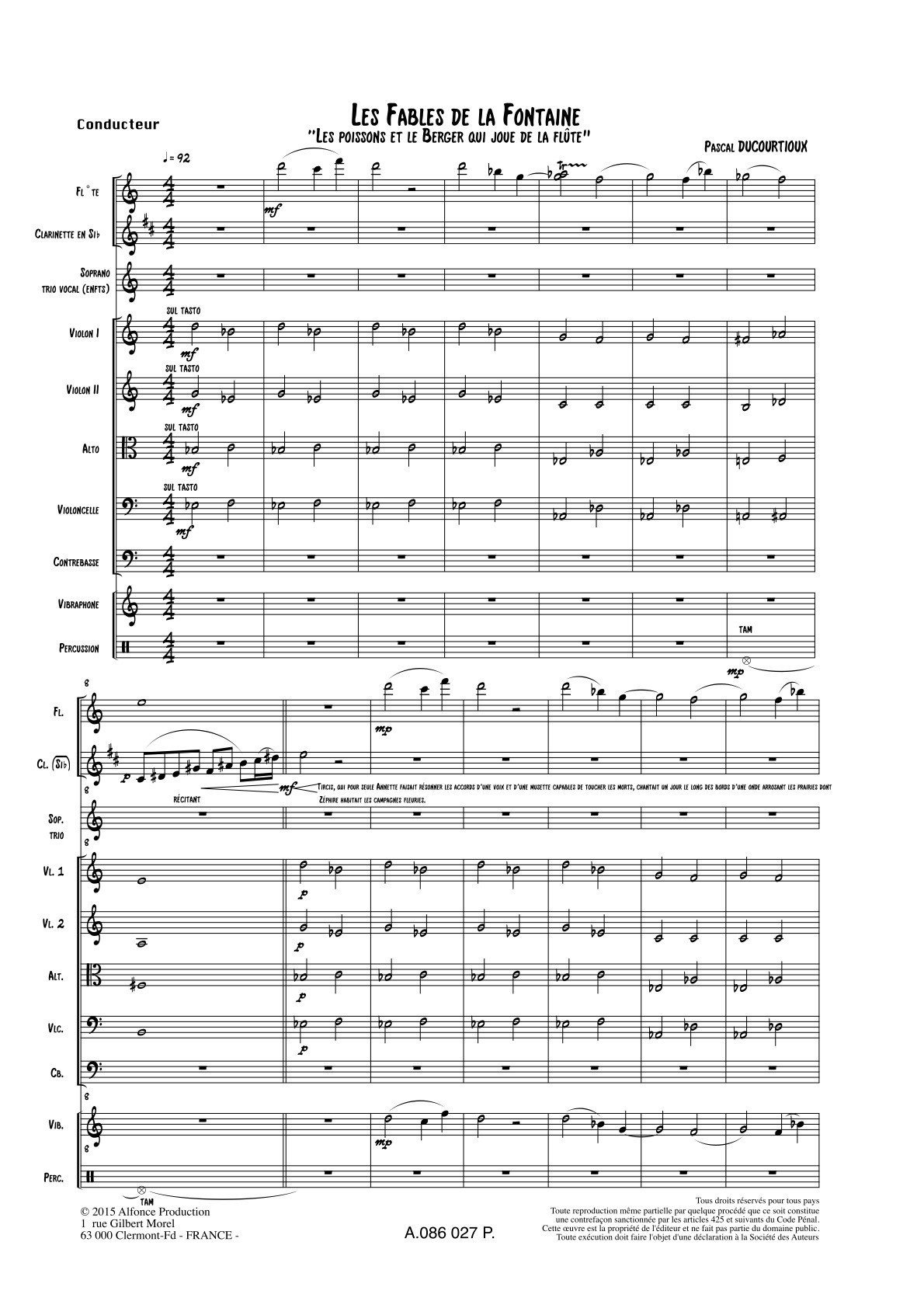 Dans la collection LES FABLES DE LA FONTAINE, piece pour musique de chambre, voix soprano et voix d’enfant. Pour flute, clarinette Sib, 2 x violon, alto, violoncelle, contrebasse et marimba.