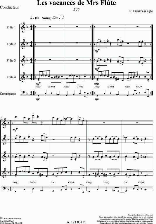 Quatuor de flutes traversieres de style jazzy avec partie optionnelle et chiffrage – 2 min 30 sec –