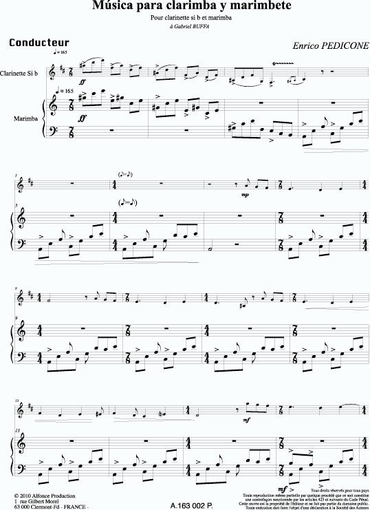 Piece pour marimba solo et clarinette Sib.