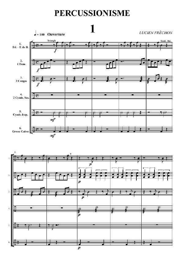 7 petites pieces : triangle, tambour de basque, 4 toms, 2 congas, 2 cymbales suspendues, cymbale frappee, grosse caisse.