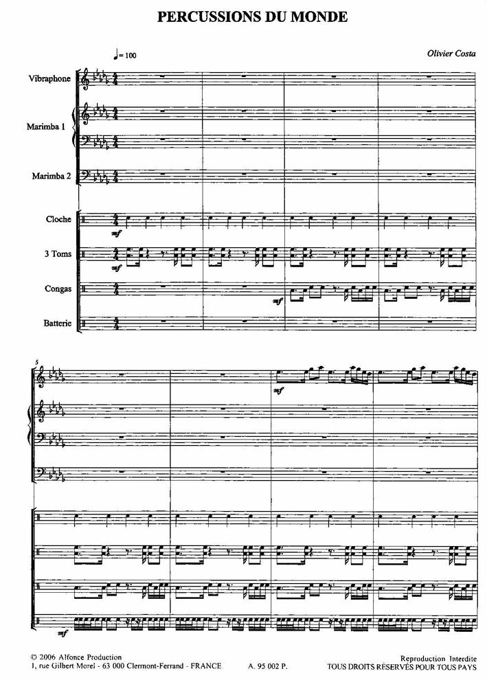 Vibra, 2 marimbas, cloche, 3 toms, congas, batterie (drums)