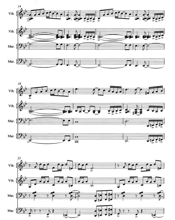 Piece pour 4 claviers : 2 vibraphones et 2 marimbas.