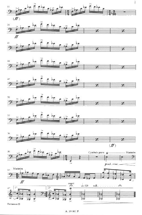 2 pieces pour 4 percussionnistes : Xylophone, vibraphone, marimba, 4 timbales (peaux et accessoires)