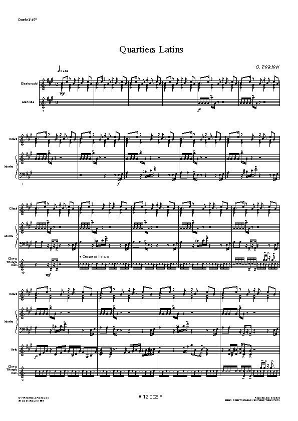Une page pleine d’entrain qui peut etre jouee des la fin du 1er cycle. Pour glockenspiel, marimba, claves, triangle, grosse caisse, xylophone.