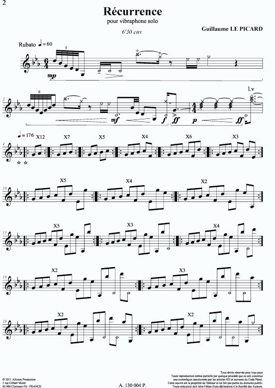 Pièce difficile pour vibraphone solo