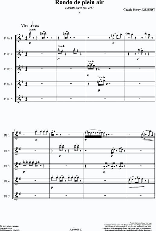 Pièce pour ensemble de flutes destinée toute une classe de flute. Niveaux varié : de facile difficile – 4 minutes –