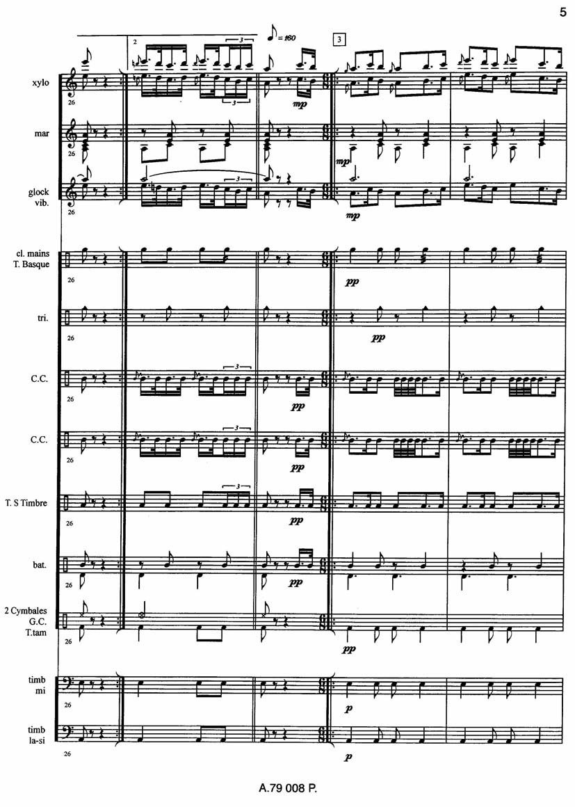 Xylo, marimba, glock, vibra, tamb de basque, triangle, caisse-claire, tambour sans timbre, batterie, grosse-caisse, 3 timbales