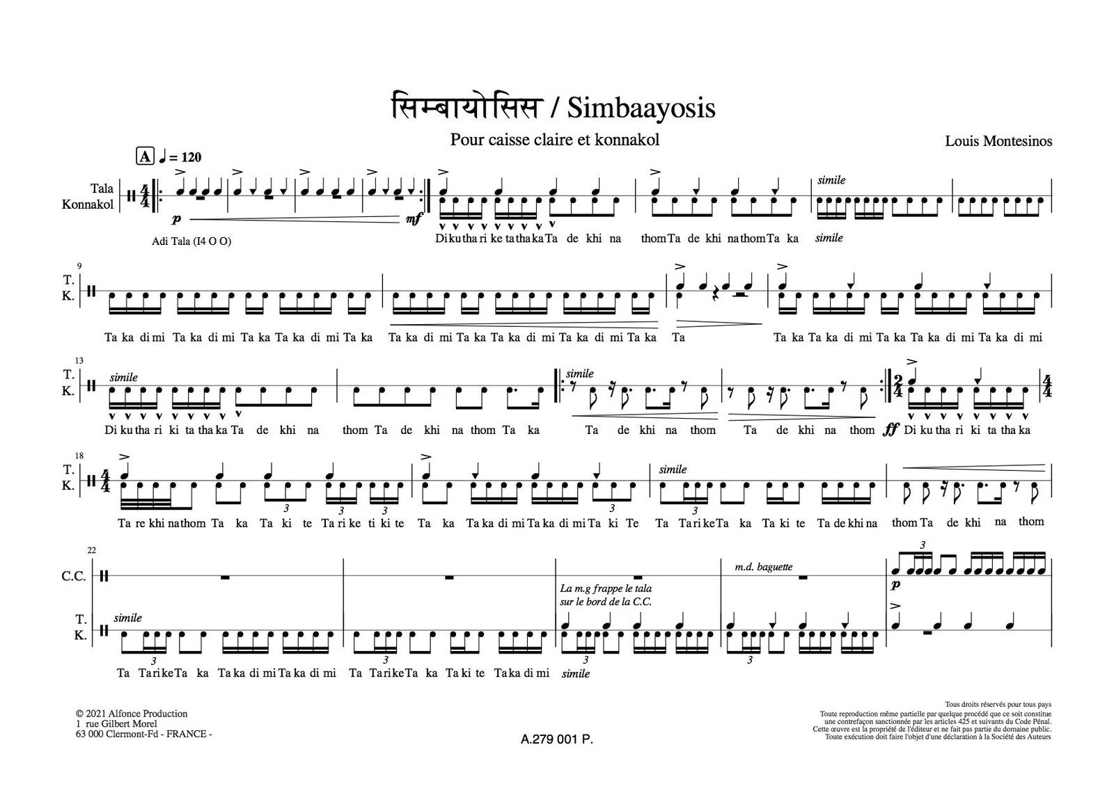 Pour caisse claire et konnakol (technique de percussion vocale issue de la tradition carnatique de l’Inde du Sud qui permet d’improviser sur des syllabes)
