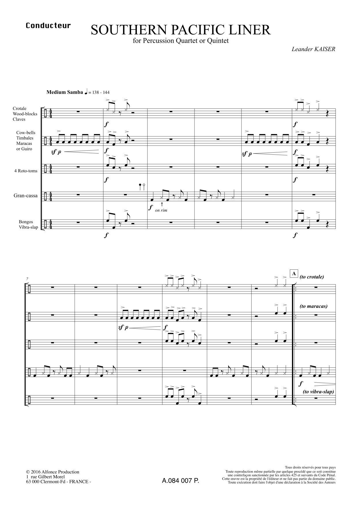 Piece pour 4 ou 5 percussions.Crotale, wd-bl, claves, cow bells, timbales, maracas ou guiro, 4 roto toms, gran casse, bongos, vibra slap