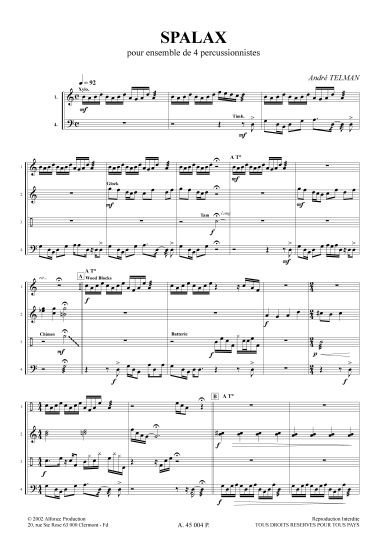 Xylophone, glock, congas, cloche, cymbales suspendues, tam, chimes, wood blocks, batterie, 4 timbales.