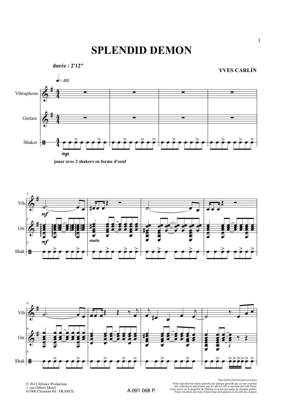 Partition de cycle 2 pour 2 percussions (vibra et shaker) et guitare – Durée : 2’12 »