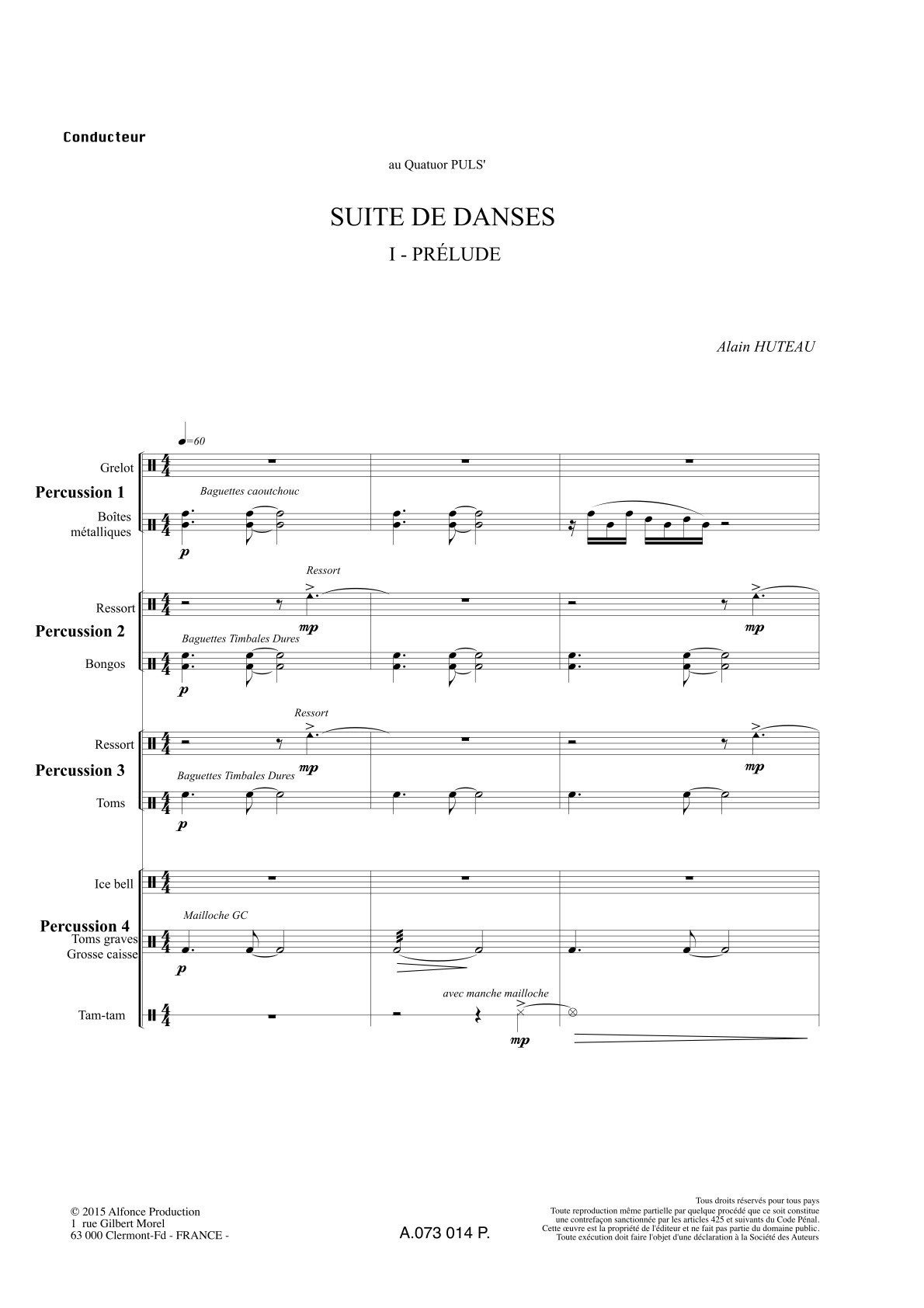 Pièces pour 4 percussions de cycle 3.Boites métalliques, grelots, triangles, tambour de basque, bongos, cloche, cymbale, caisse claire, grosse caisse, tam tam