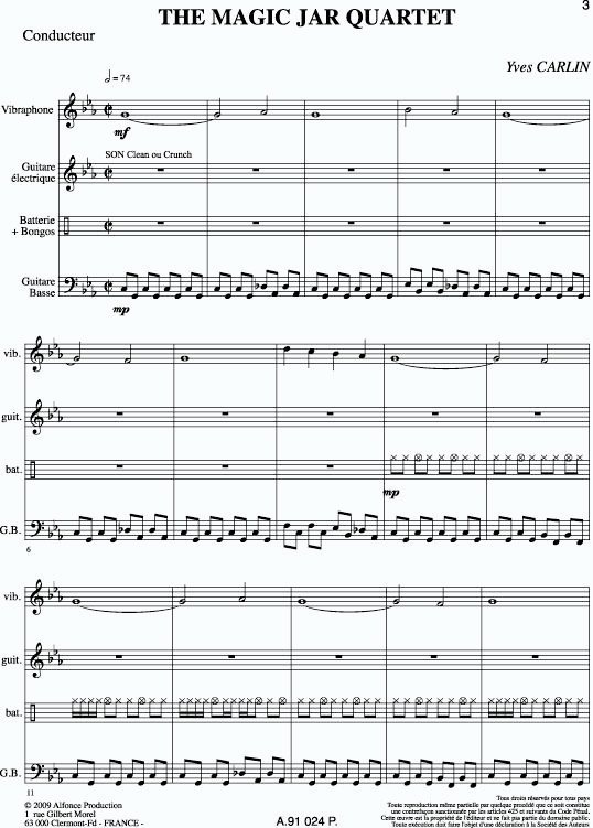 Piece pour vibraphone, batterie, guitare electrique et guitare basse.