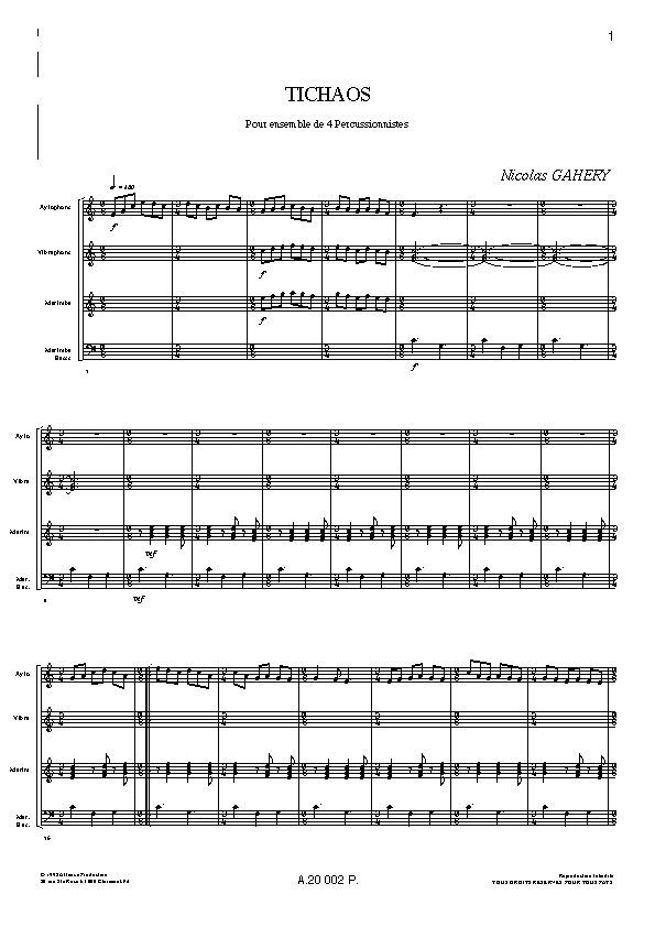 Piece facile pour 4 claviers : xylophone, vibraphone, marimba et marimba basse.