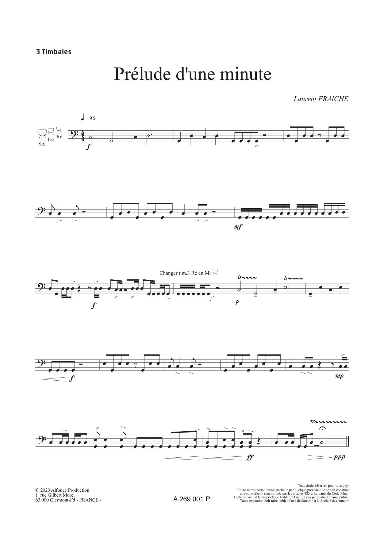 Recueil de 3 pièces pour timbales solo de Laurent Fraîche (Timbalier solo de l’ON Lillle).Commande du Conservatoire de Roubaix – Mars 2020 –
