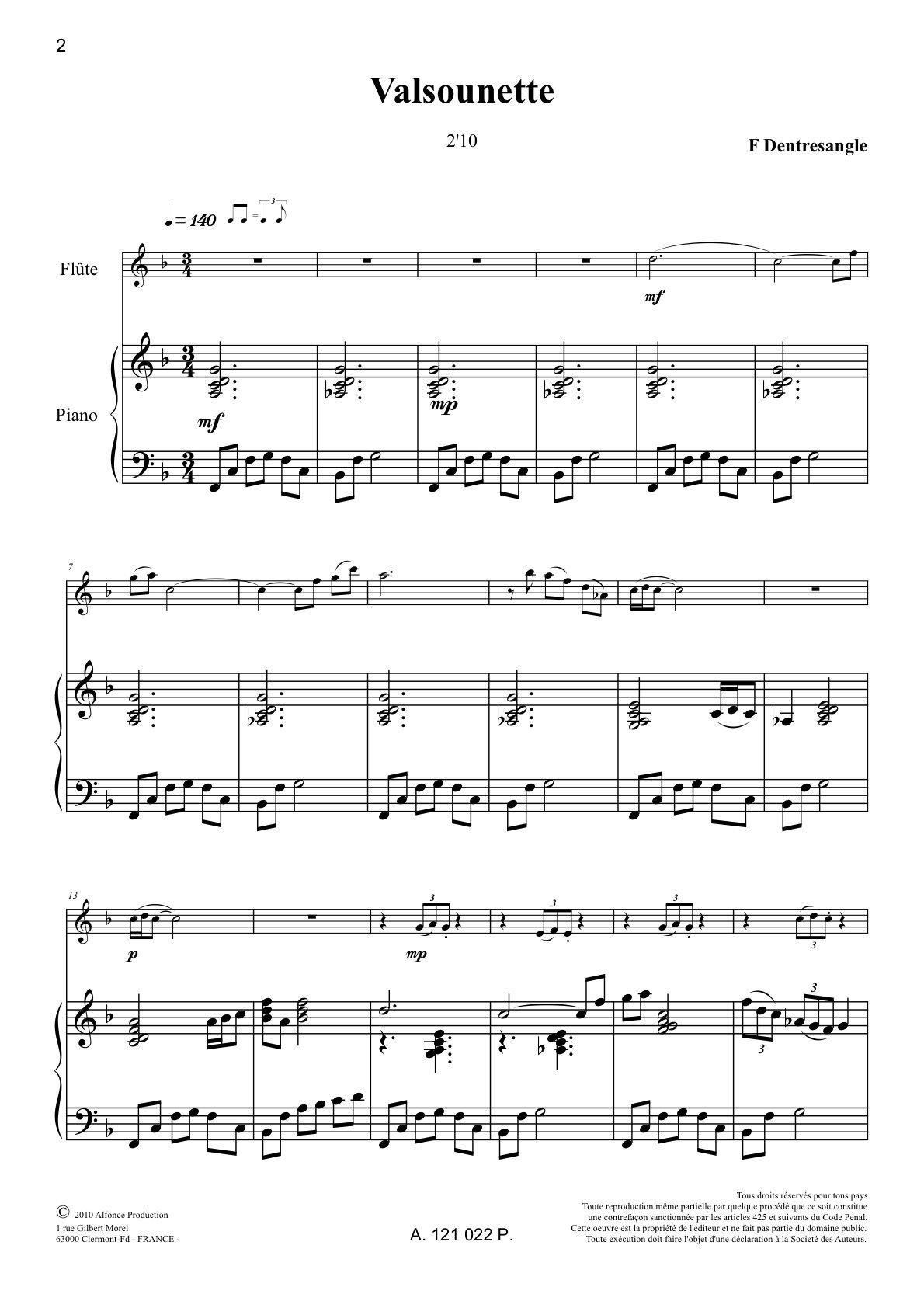 Piece pour flute solo et piano – 2 min 10 sec – Facile –