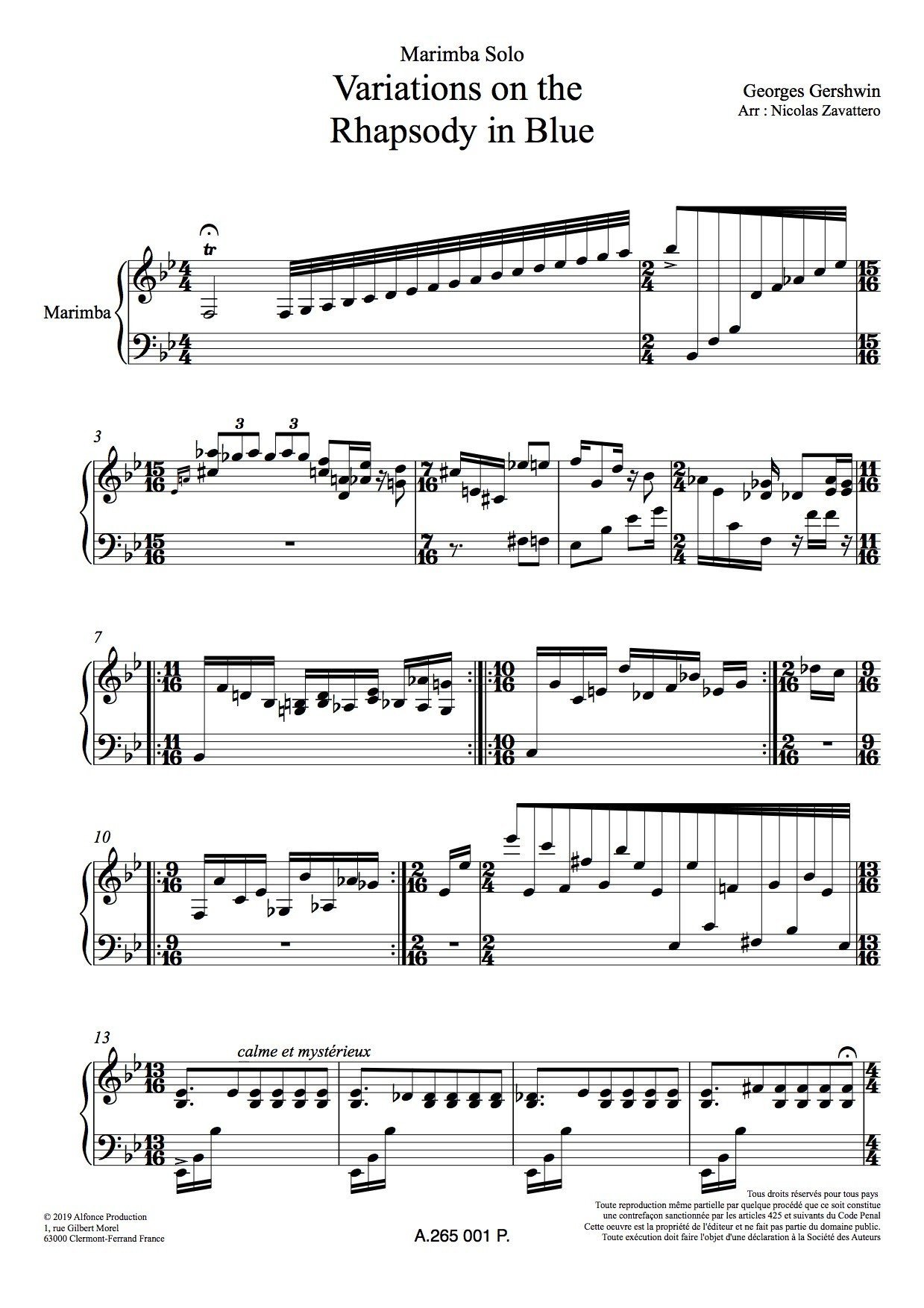 Arrangement de Gershwin pour marimba solo 5 oct